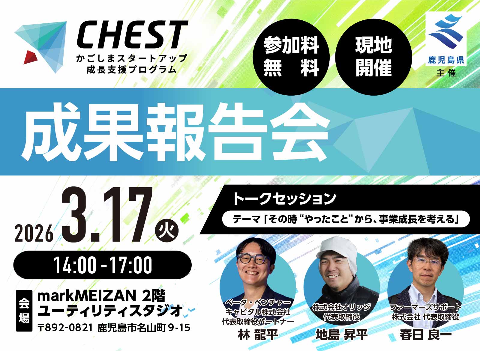 「CHEST(チェスト)」とは、鹿児島発のスタートアップを育てる支援プログラムです。
